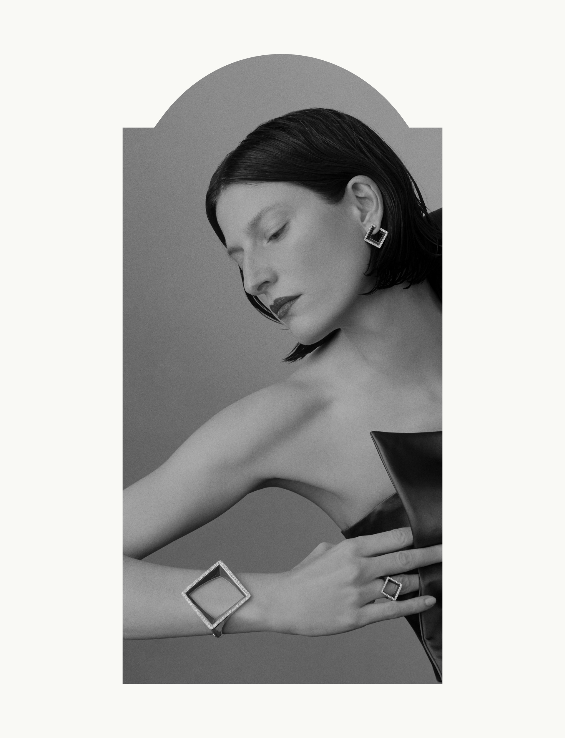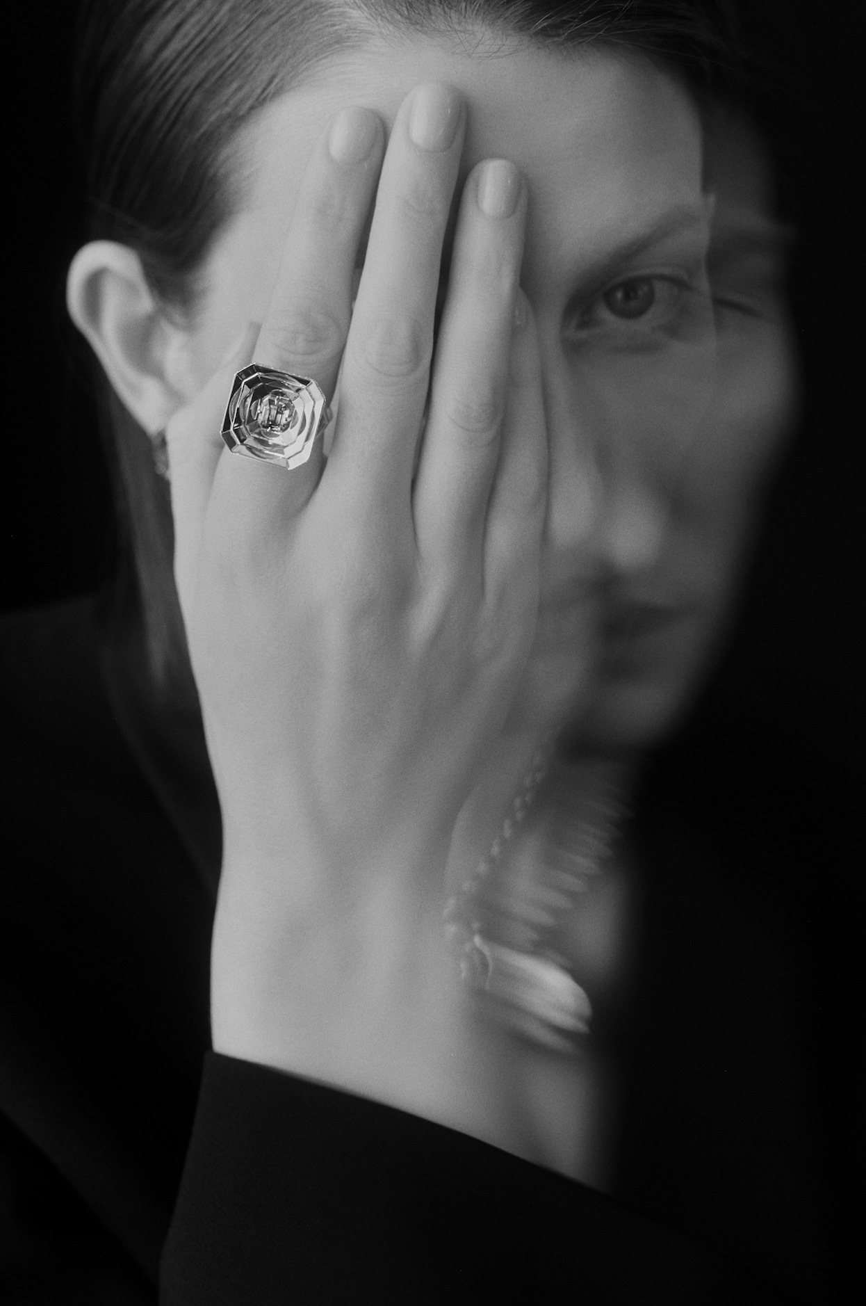 MACADAM explores the elegant tension between structure and softness. Each piece is a study in balance, sharp lines meet fluid contours, creating forms that are both architectural and intimate. At MACADAM, jewelry becomes spatial.