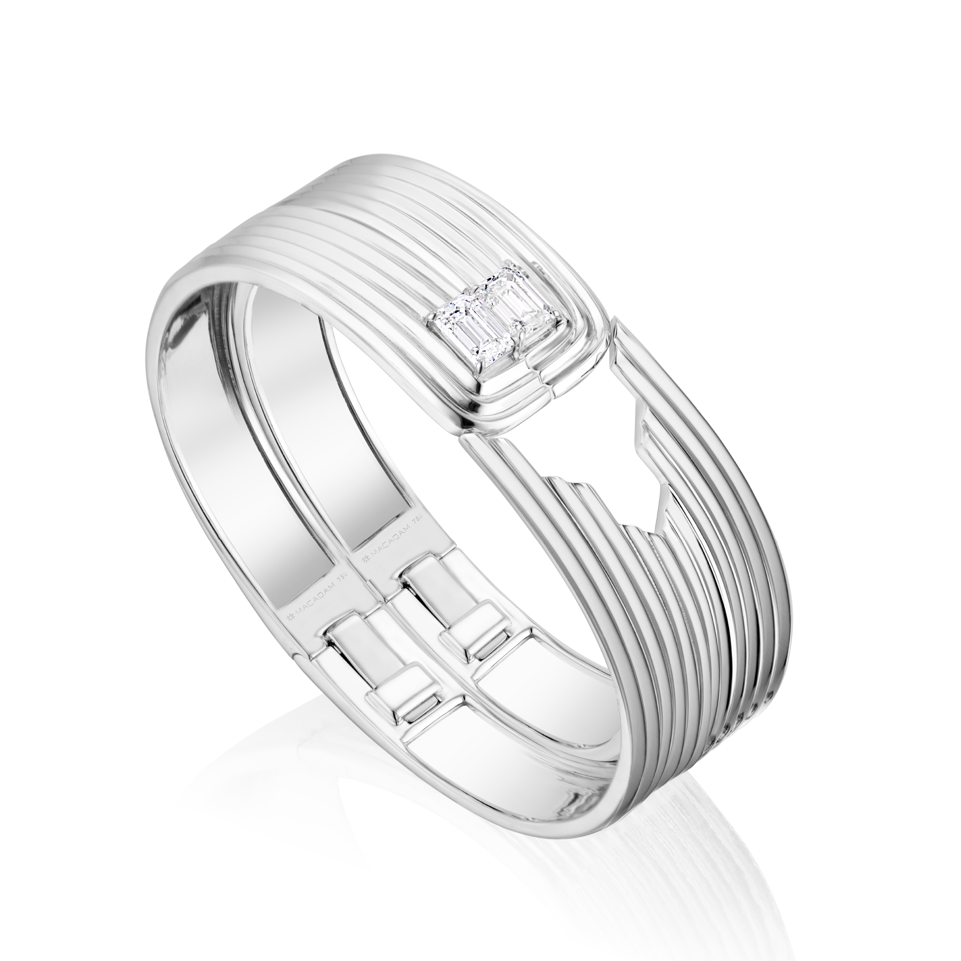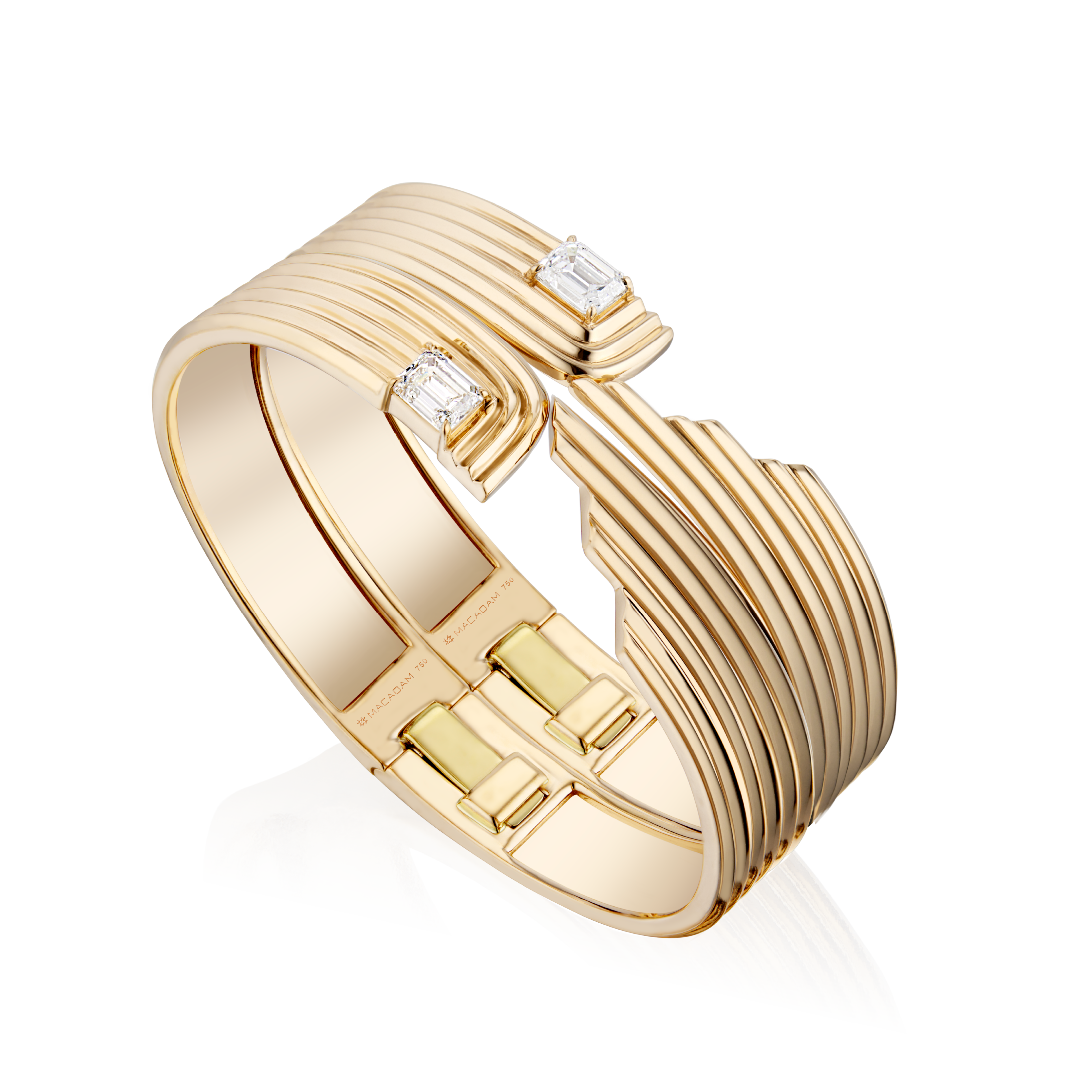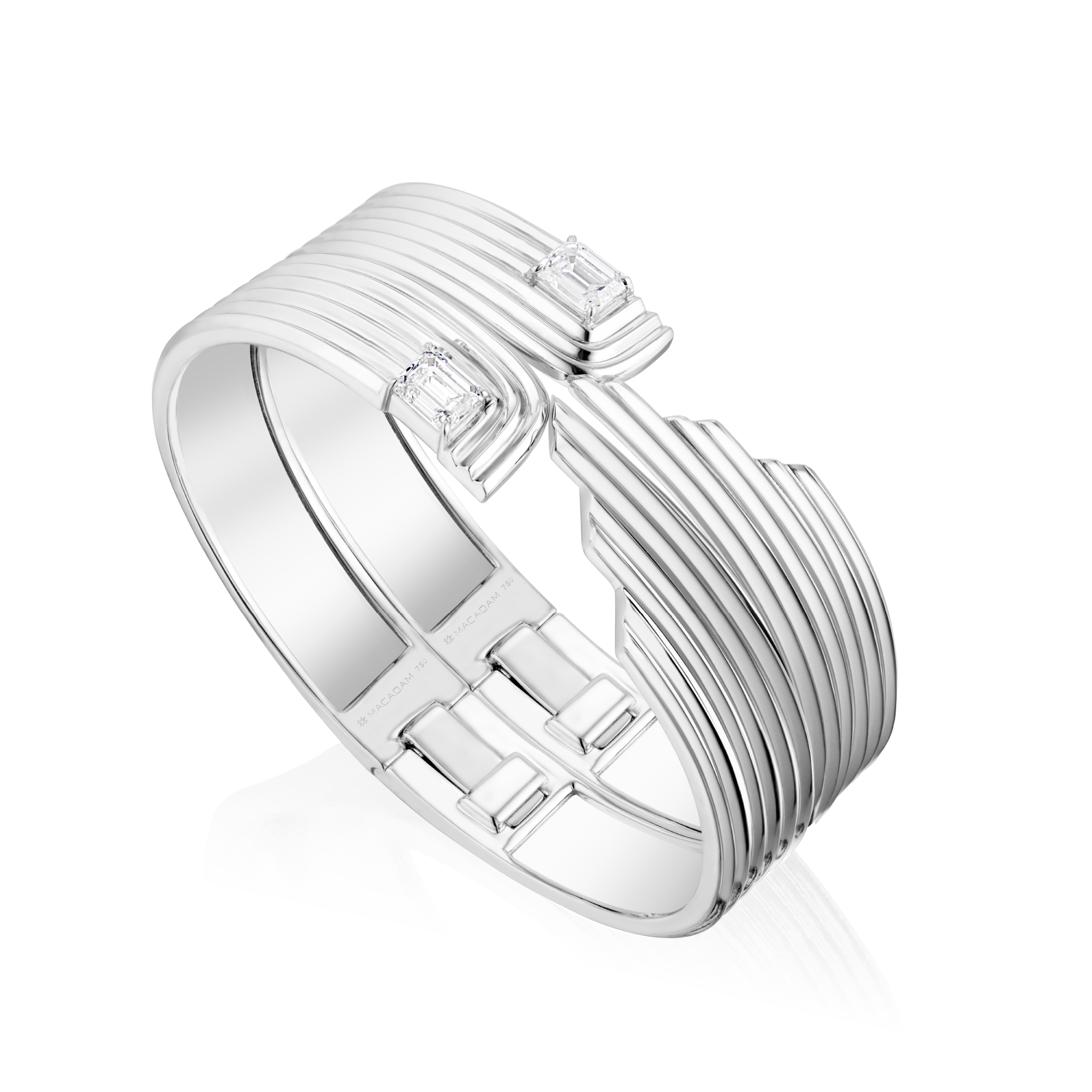 1 Emerald-Cut Natural Diamond per bracelet, Approx. 1.00 CT each (FVS).
