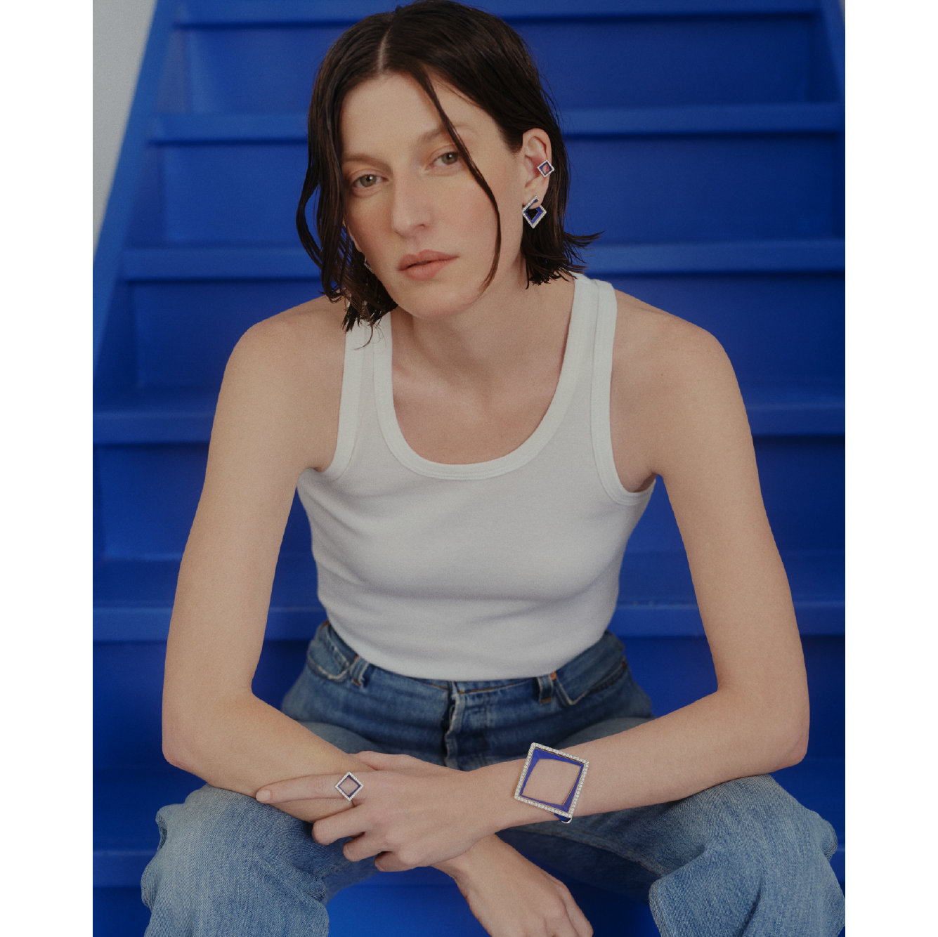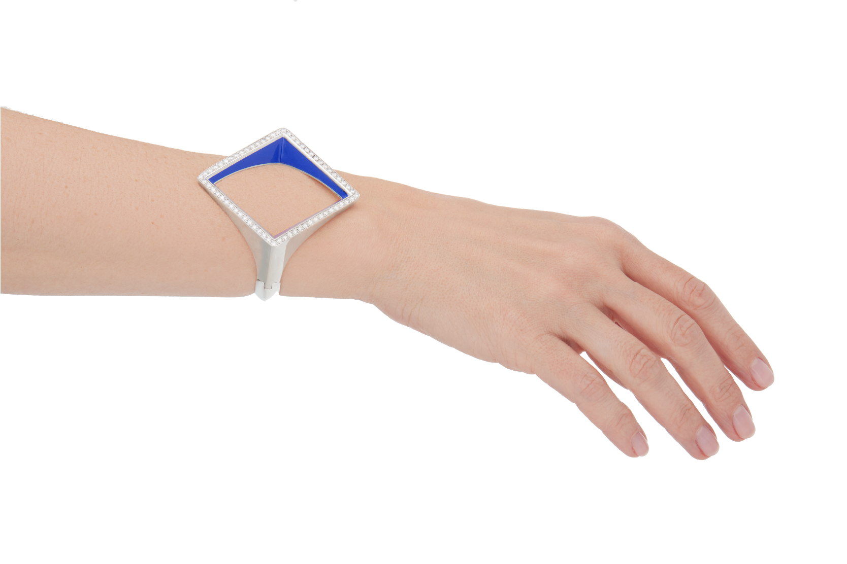 18K Gold. Available in White Gold and Blue Enamel, Yellow Gold and Turquoise Enamel, and Rose Gold and Orange Enamel.